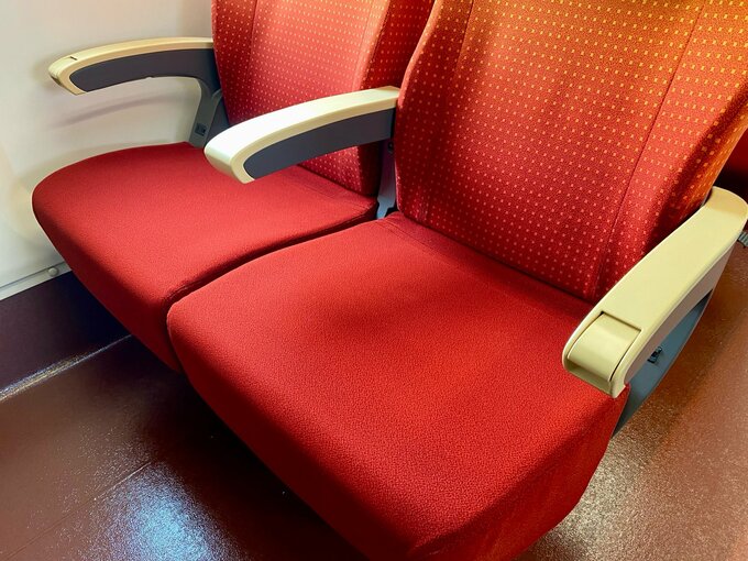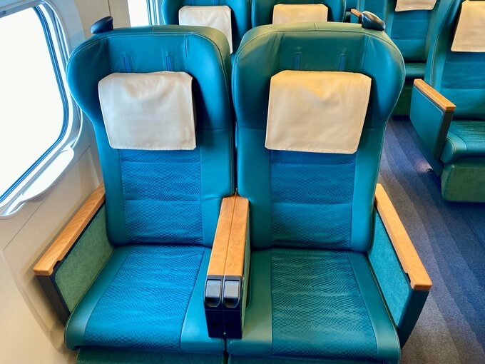 グリーン車は月山の針葉樹をイメージした緑を基調としています。