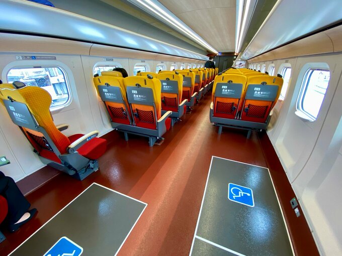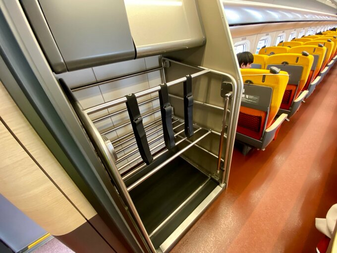スーツケーススペースは、これまでは通路にありましたが、客席の一角に設けられました。