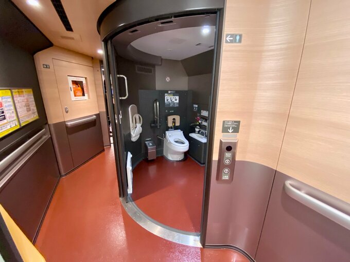 そして、災害や停電時はバッテリーに切り替えて利用可能なトイレを1編成に2か所導入されました。
