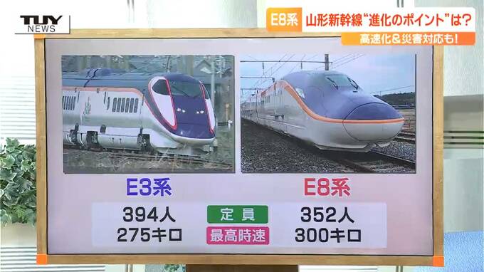 これまでのE3系は定員394人で新型のE8系は定員が352人。