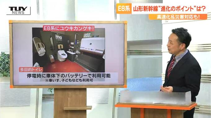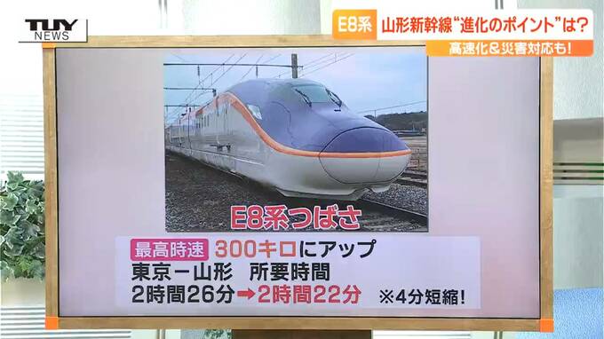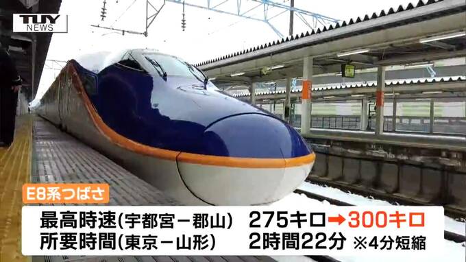 スピードが増しています。300キロと最高速度が上がったことで、東京―山形間の所要時間がこれまでの2時間26分から2時間22分と4分短縮されました。