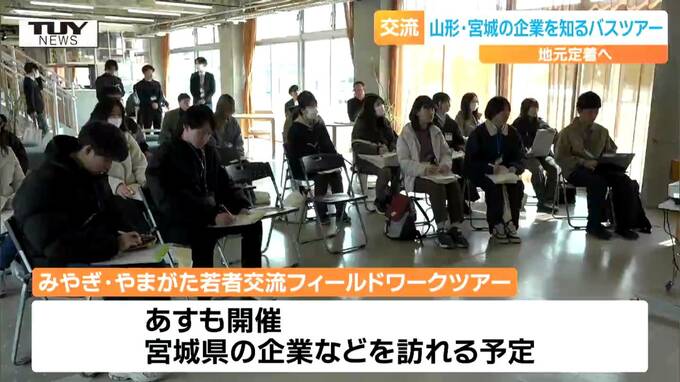 きょう始まった「みやぎ・やまがた若者交流フィールドワークツアー」は、山形・宮城それぞれの県の企業を訪問し、働き方やその土地を知ることで若者の地元定着につなげようと、開かれたものです。