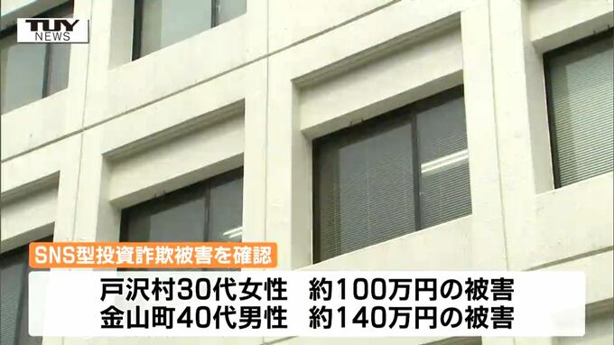 県内ではこのほか、SNSの投資に関するサイトをきっかけに、戸沢村の30代女性がおよそ100万円の被害に、金山町の40代の男性がおよそ140万円の被害にあったことも確認されています。