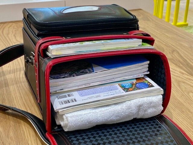 実験は簡単。教科書数冊と布を用意。ランドセルに両方を入れるのだが・・・