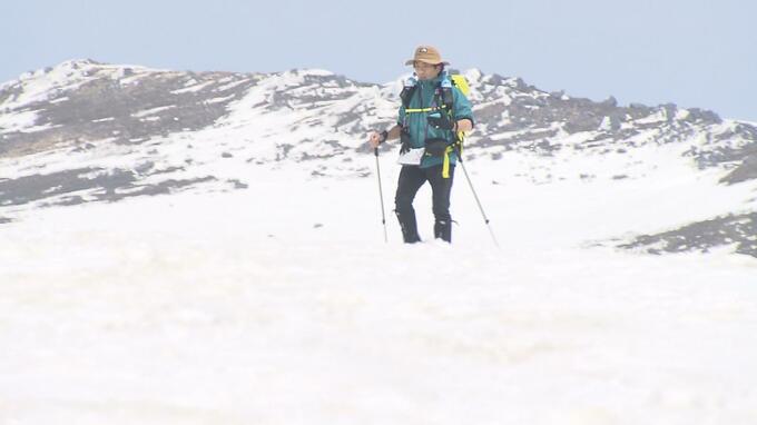 残雪が美しい山並みをみながらのトレッキングは年齢を問わず人気だ。