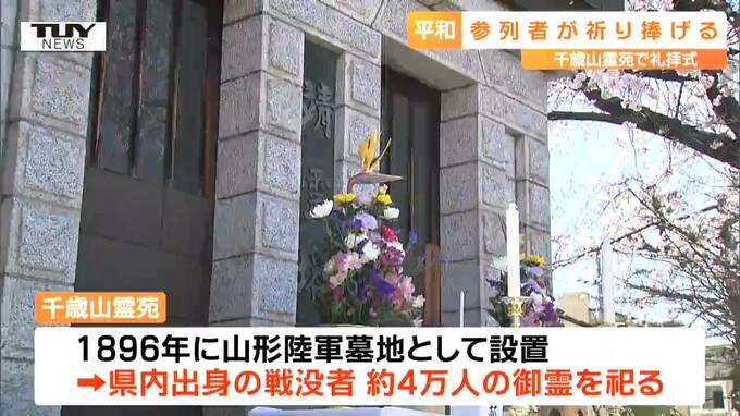 山形市あこや町にある千歳山霊苑は、日清戦争が終わった次の年、1896年に山形陸軍墓地として設置され、県内出身の戦没者およそ4万人の御霊がまつられています。