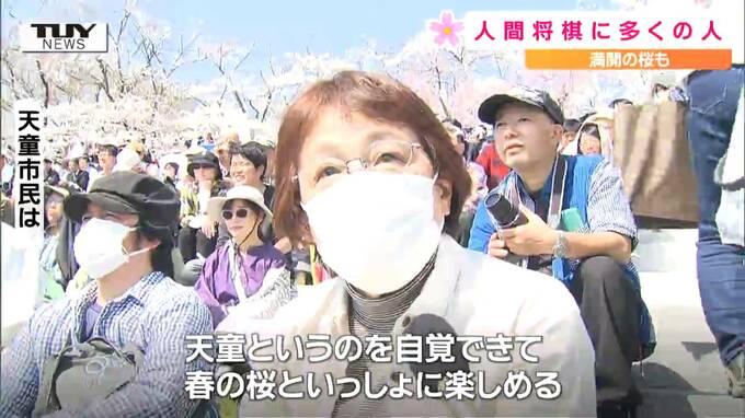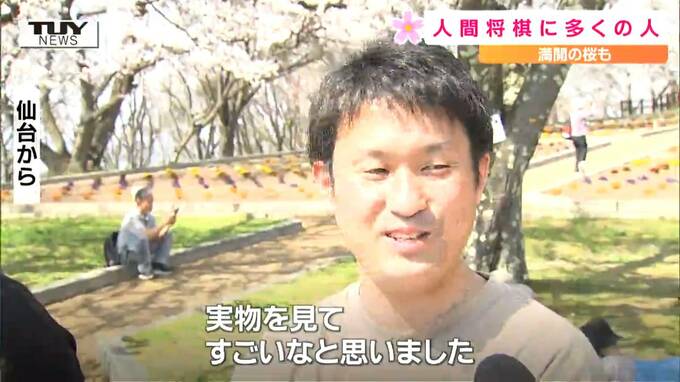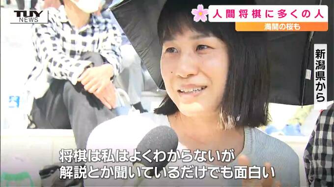 天童市民は「将棋はわからないんですけど、楽しく見ています。天童というのを自覚できて、春のサクラといっしょに楽しめるいいイベントだと思います」