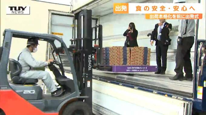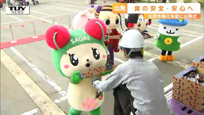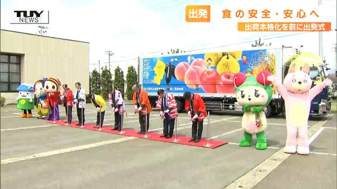きょうは出発式が開かれ、JA関係者や生産者などがこれから本格化する出荷作業の安全と、安心できる農作物の生産を決意していました。