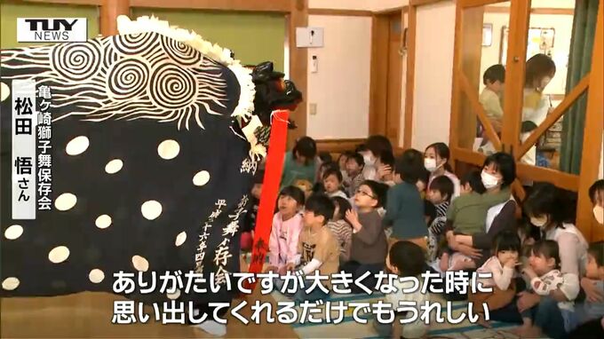亀ヶ崎獅子舞保存会 松田悟 さん「本当であれば大人になった時にやってみたいという気持ちになってくれれば後継者不足なのでありがたいですが、大きくなった時に思い出してくれるだけでもうれしい」