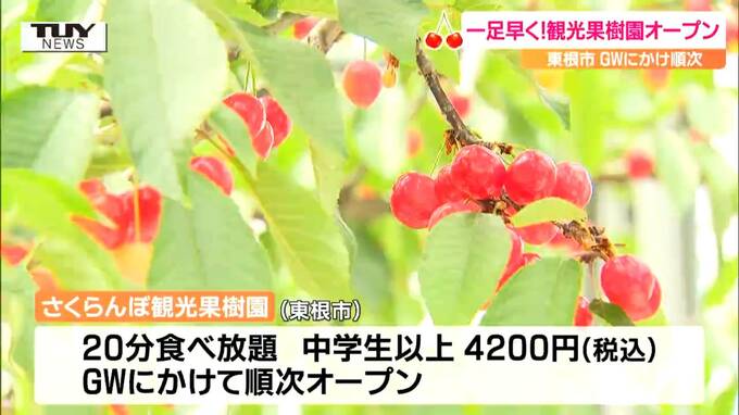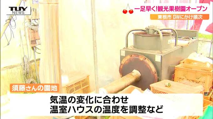 東根市にある温室ハウスのさくらんぼ観光果樹園は、ゴールデンウイークにかけて順次オープンしていくということです。