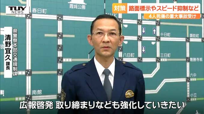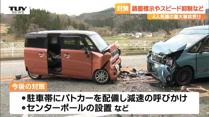 県と警察では今後、駐車帯にパトカーを配備し、ドライバーにスピードを落とすよう呼びかけを続けるほか、センターポールの設置や路面表示などといったハード面での事故防止対策も検討していくということです。