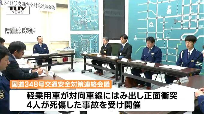 今月8日に起きた4人が死傷する重大事故を受けて、国道348号の事故防止を検討する会議が開かれました。