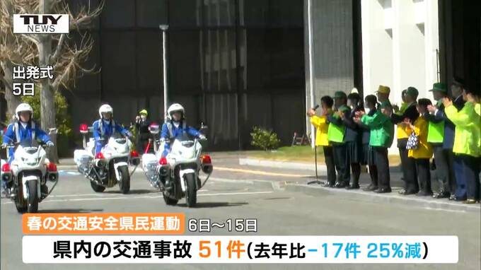 警察によりますと、今月6日から10日間行われた春の交通安全県民運動の期間中、県内で起きた交通事故は51件でした。去年に比べ17件、率にして25パーセント減っています。