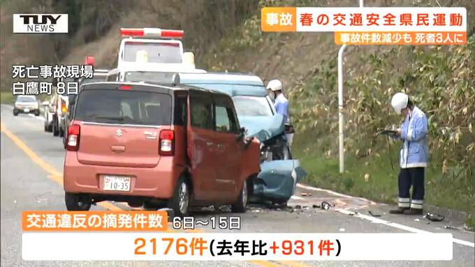 今月6日からの春の交通安全県民運動期間中、山形県内で起きた交通事故の件数が18日に公表され、事故の総数は前の年から減ったものの、2件の死亡事故が起き、3人が命を落としました。
