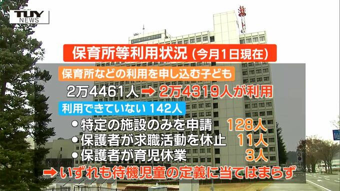 保護者が育児休業をしている子どもが3人となっていて、いずれも待機児童の定義には当てはまらないということです。