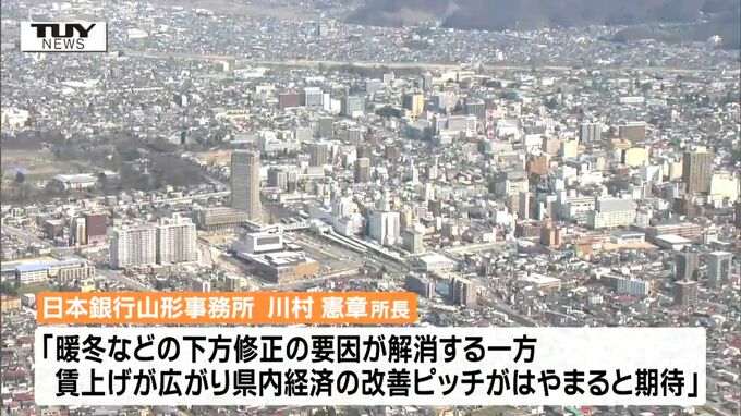 先行きについて、日本銀行山形事務所の川村憲章所長は「暖冬などの下方修正の要因が解消する一方、賃上げが広がり、県内経済の改善ピッチがはやまることが期待される」としています。