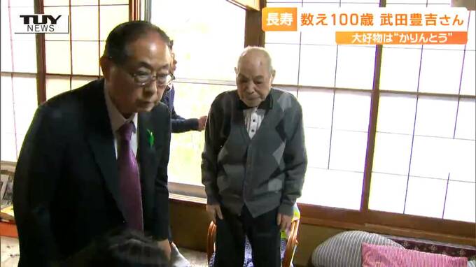 東根市の土田市長から表彰されたのは、市内に住む武田豊吉さん。大正14年生まれの数え年100歳!