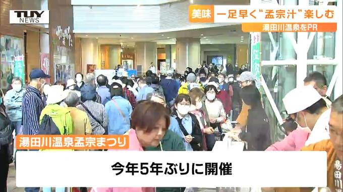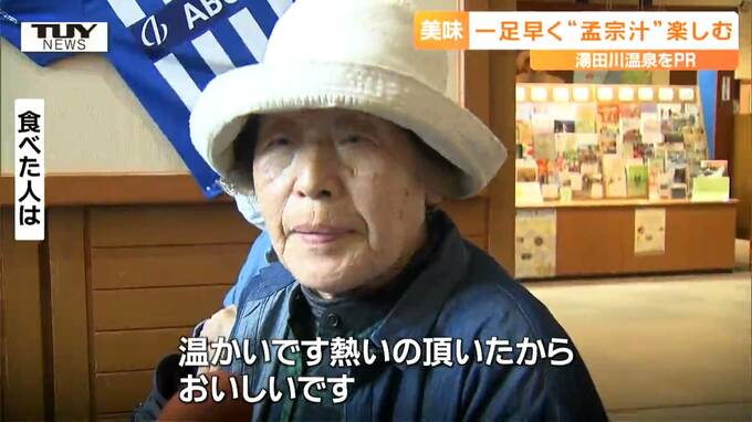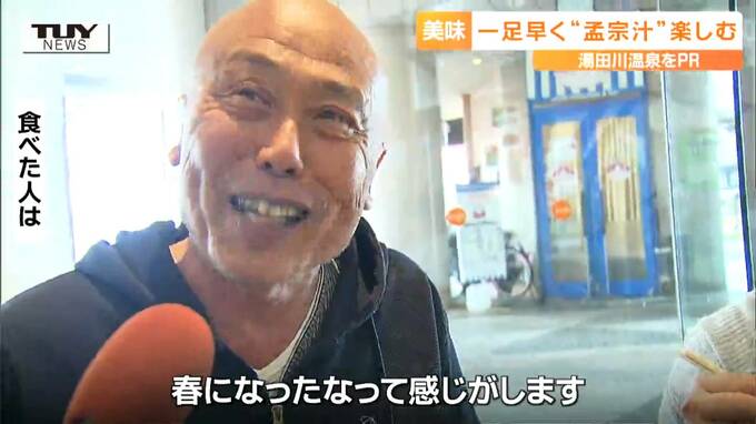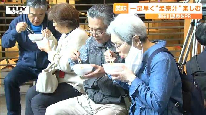 きょう山形市では、一足早く、旬を迎えた湯田川孟宗を使った孟宗汁がふるまわれました。