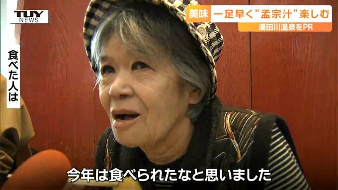 湯田川温泉観光協会 太田百合 副会長「これから旬を迎えます湯田川孟宗を、こんなにおいしそうに食べていただいて大変うれしい。新鮮な孟宗をおいしく料理させていただきますので、美味しく召し上がってください!」