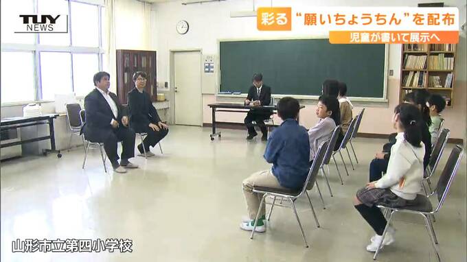 山形市の第四小学校で、きょう贈呈式が行われ、実行委員会から全校児童分およそ190個の願いちょうちんが贈られました。