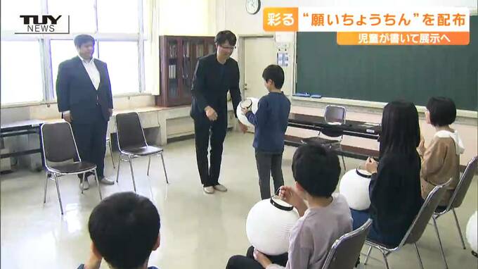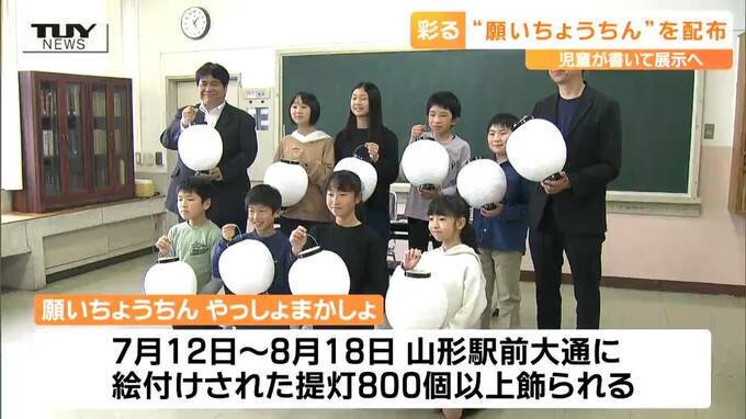 夏の山形駅前大通を明るく彩る"願いちょうちん"がきょう、山形県山形市の児童に配られました。