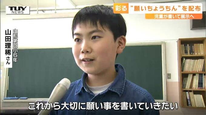 山形第四小学校6年生 山田理稀さん「これから大切に、願い事を書いていきたい。いま世界中で戦争とかしてる国がたくさんあるので、世界平和と書きたい」
