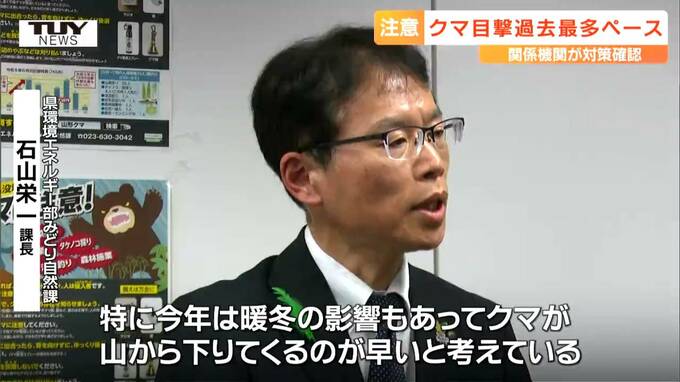 春の行楽シーズンを前に、すでに目撃情報が多く寄せられているクマへの対策を確認する山形県の会議が、きょう山形県庁で行われました。