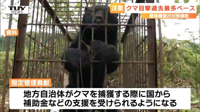 県によりますと、今年に入って今月21日現在でのクマの目撃件数は20件で、2003年の統計開始以降、2番目に多かった去年4月末の17件をすでに上回っています。