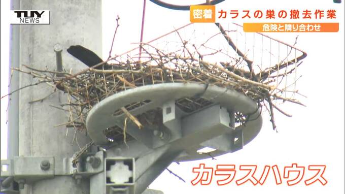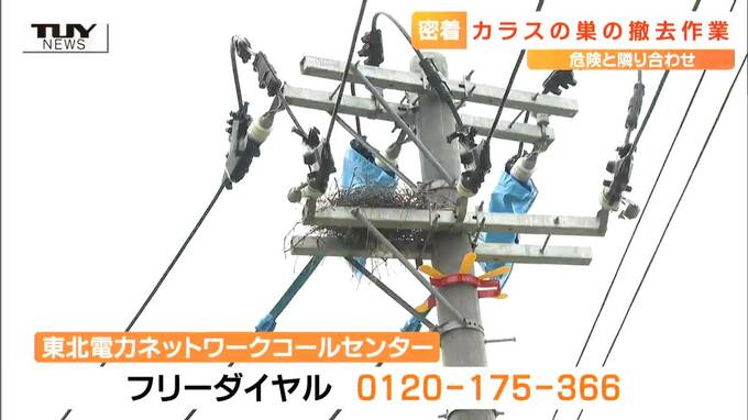 東北電力ネットワーク・村山祐也さん「4月~ゴールデンウィークにかけてカラスの繁殖期ということで、カラスの巣を街中で見かけることがあると思うんですけれども、その際は、当社のネットワークコールセンターの方に情報をいただければと思います」
