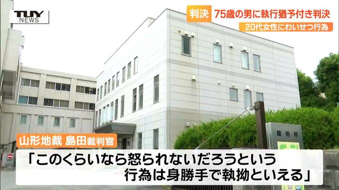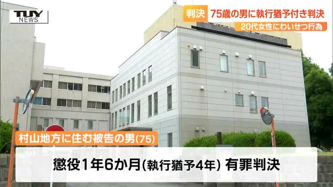 75歳の男が20代の女性にわいせつな行為をしたとされる裁判の判決公判が、きょう山形地方裁判所で開かれ、被告の男に、懲役1年6か月、執行猶予4年の有罪判決が言い渡されました。