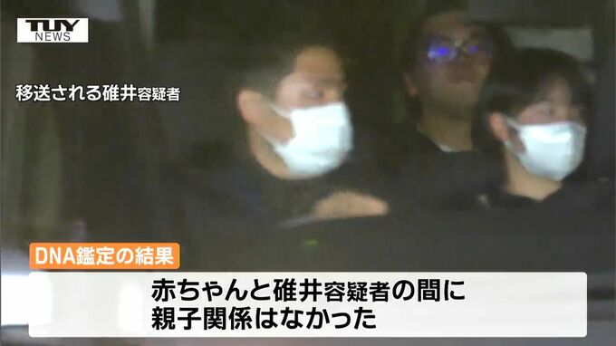 また、新たに、DNA鑑定の結果、赤ちゃんと碓井容疑者の間に親子関係はなかったことが分かりました。