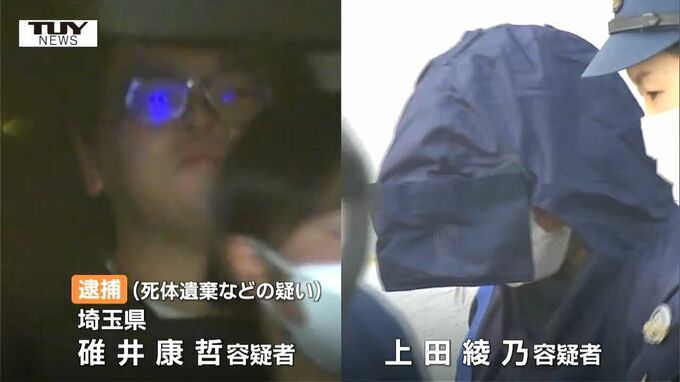 死体遺棄などの疑いで逮捕されているのは、埼玉県の碓井康哲容疑者(33)と上田綾乃容疑者(当時37)です。