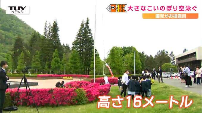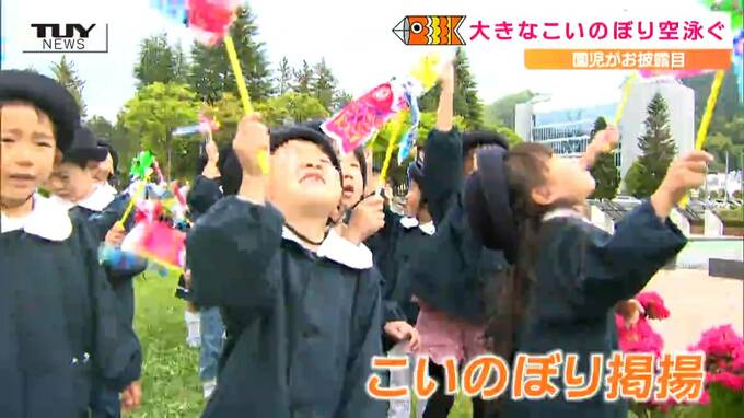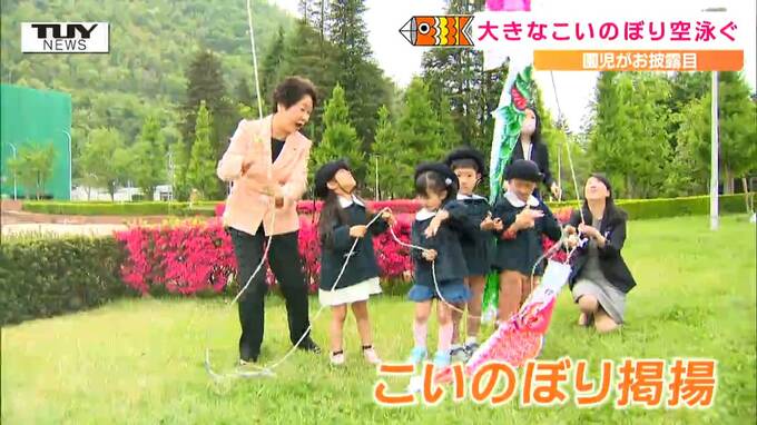 5日のこどもの日を前に、山形県庁では、こどもたちが元気にこいのぼりを掲げました。