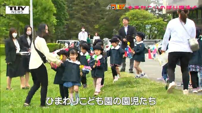 県庁の広場に集まったのは、山形市のひまわりこども園の園児たち22人。これから、高さ16メートルもあるポールにこいのぼりを掲げます。
