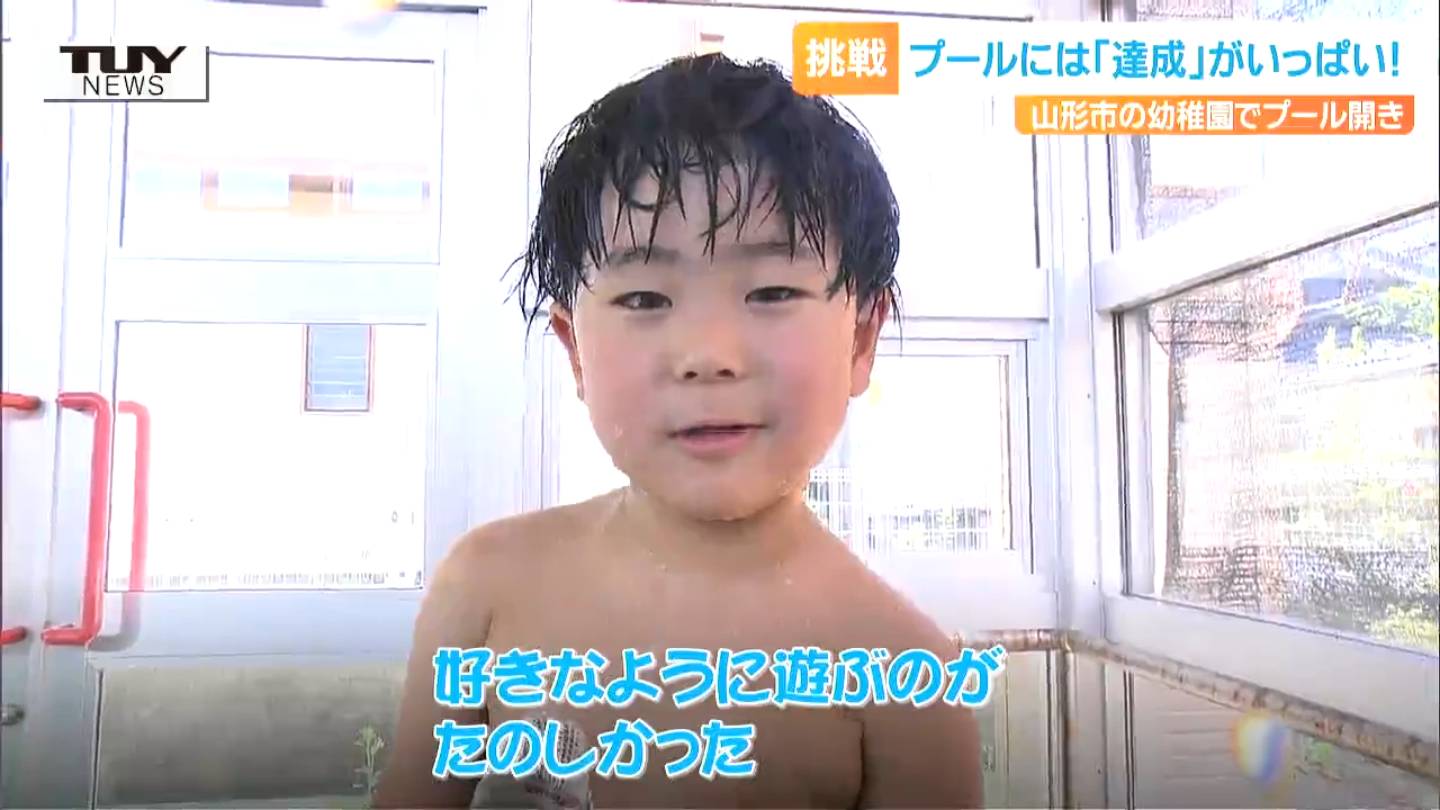 暖かい日が続き、夏がすぐそこまで来ているように感じますが、山形県山形市の幼稚園ではきょう、早くもプール開きが行われました。