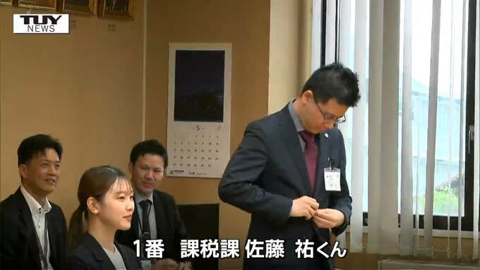 野球の打順かのように、次々と名前を読み上げられる職員たち。