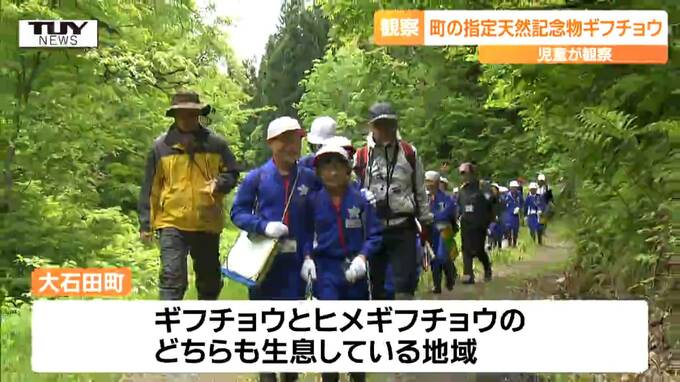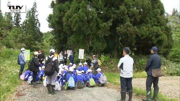 山形県大石田町できょう、地元の児童たちが町の指定天然記念物を観察し、地元の魅力を学びました。