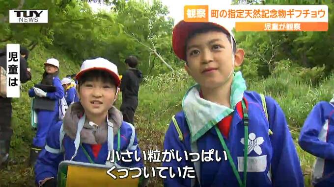 雪解けと同時に成虫になるギフチョウですが、きれいな舞をみせるのはおよそ一週間。今年は暖冬の影響で成虫になる時期が早まっていることもあり、きょうはギフチョウが飛ぶ姿は見られませんでしたが、児童たち、あるものを発見しました。
