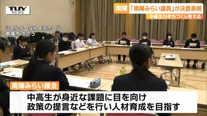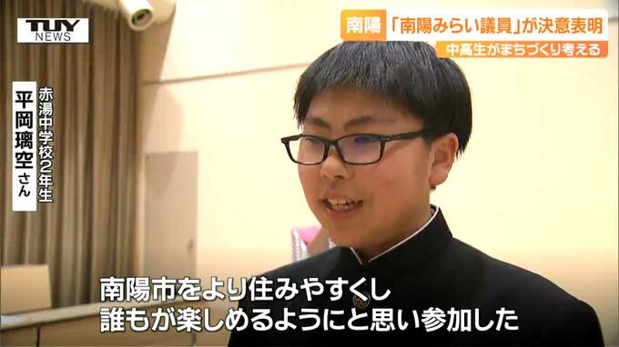 南陽みらい議会は中高生が身近な課題に目を向け、市に政策の提言などを行うことで、地域に根ざした人材の育成を目指しています。