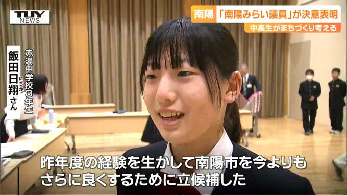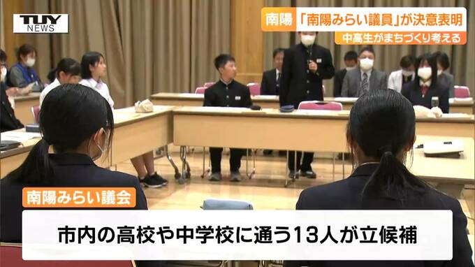2年目を迎える今年度は、南陽みらい議会の議員に市内の高校や中学校に通う13人が立候補しました。