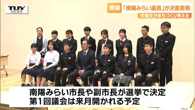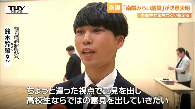 山形県南陽市できのう、中高生が今後のまちづくりを考える「南陽みらい議会」が立ち上がり、議員たちが決意表明などを行いました。