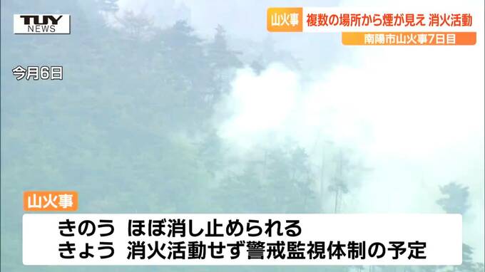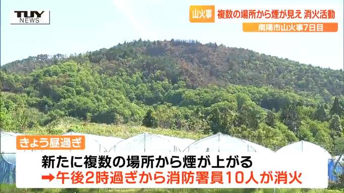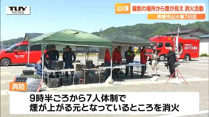 山形県南陽市で起きた山火事は、発生から7日目を迎えました。火事はきのう、ほぼ消し止められましたが、きょう、山から煙が上がっているのが確認され、消火活動が行われました。