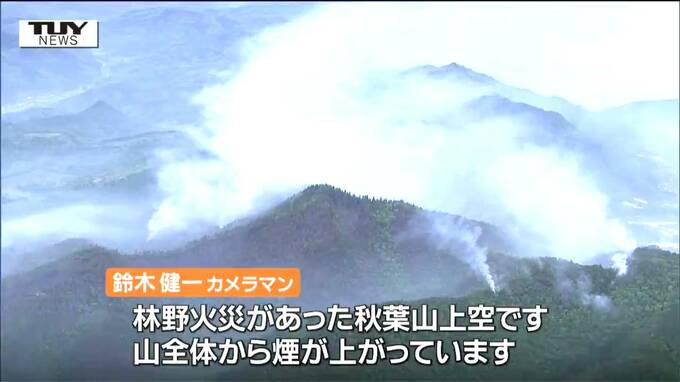 鈴木健一 カメラマン「林野火災があった秋葉山上空です。山全体から煙が上がっています。発生から30時間以上たっても煙の勢いはおさまっていません」