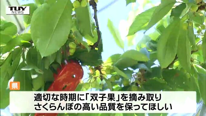 4月から暖かい日が続き、例年より1週間ほど生育が早まっているということで、県では適切な時期に「双子果」を摘み取り、さくらんぼの高い品質を保ってほしいとしています。