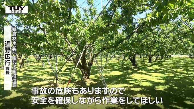 また、今年は、さくらんぼ作業中の転落事故が去年の同じ時期を上回る6件起きていて、作業中の事故にも注意してほしいと呼びかけています。