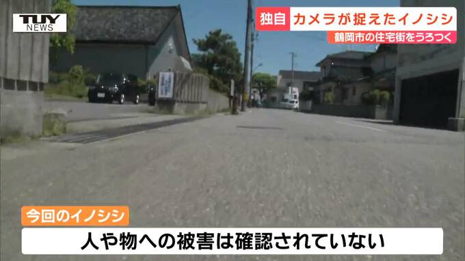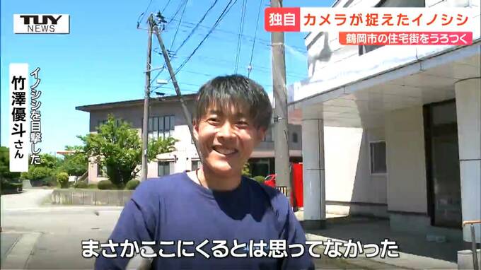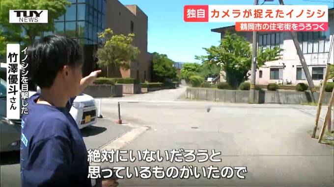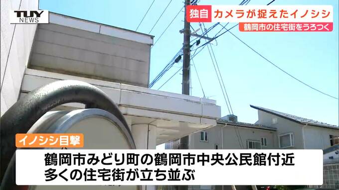 イノシシが目撃されたのは、鶴岡市みどり町の鶴岡市中央公民館付近。山からは遠く離れた場所で、近くには多くの住宅が立ち並んでいます。