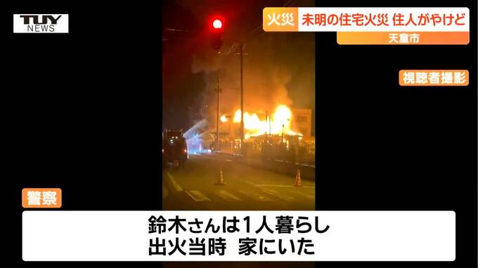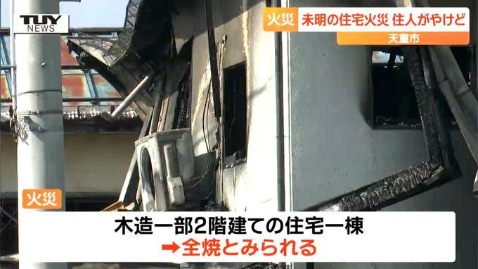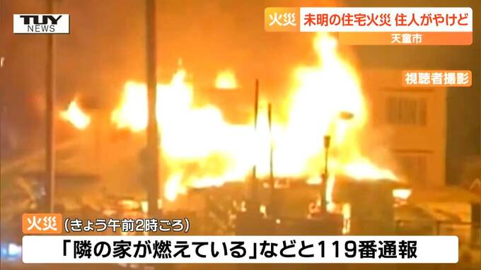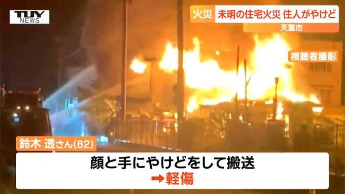 きょう未明、山形県天童市で住宅を焼く火災がありました。この火災で、住人の男性が顔などにやけどをし、病院に運ばれました。