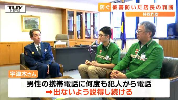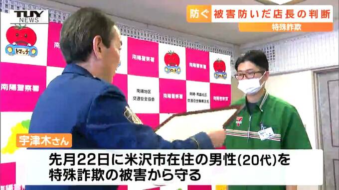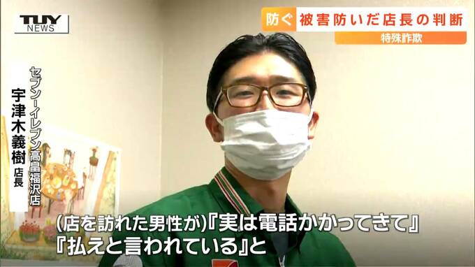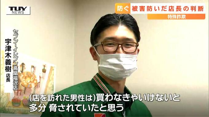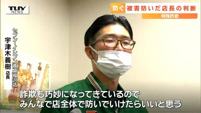 セブンーイレブン高畠福沢店 宇津木義樹 店長「『こういう詐欺、今流行っているんですけどそうじゃないですか?』と声かけして、『実は電話かかってきて』って。『払えと言われているんです』っていうことだったので、これは詐欺だと思ったのがきっかけだった」