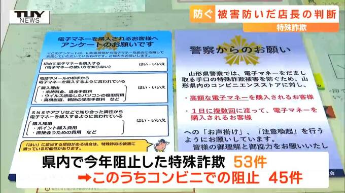 警察によりますと、今年に入って県内で阻止した特殊詐欺53件のうち、コンビニで阻止されたものは45件あり、こうしたコンビニが詐欺被害を防ぐ砦になっています。