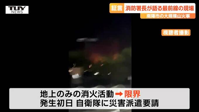 地上のみの消火活動に限界を感じたのは早い段階だったといいます。南陽市は発生の初日に、自衛隊に災害派遣要請を行いました。